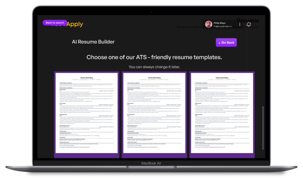 Build your strongest resume with AI-powered guidance. Upload your current resume or start fresh RoboApply instantly turns your details into a polished, ATS-optimized resume employers will notice.