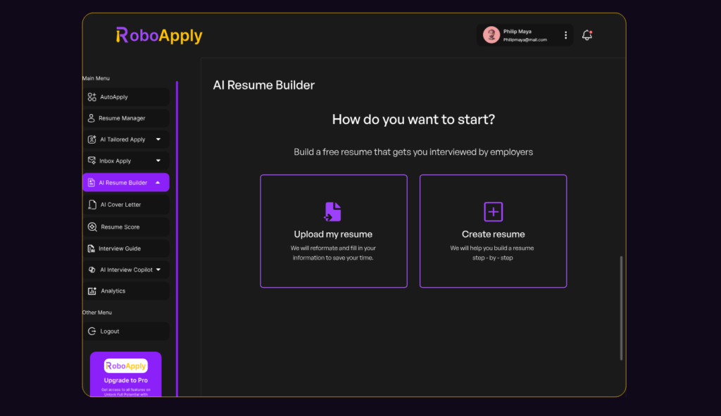 Creating multiple customized versions manually takes considerable time during active job searches. Tools like RoboApply’s AI Resume Builder help structure your content for maximum impact while maintaining ATS compatibility. The platform’s AI Tailored Apply feature reads job descriptions and emphasizes your most relevant achievements automatically.